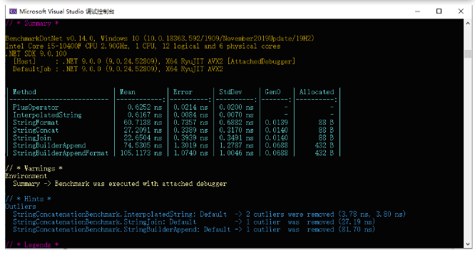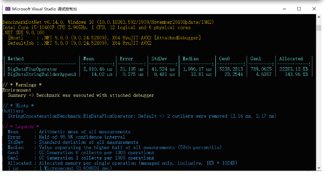 【摘要】 前言在C#编程中字符串拼接是一种常见且基础的操作,广泛应用于各种场景,如动态生成SQL查询、构建日志信息、格式化用户显示内容等。然而,不同的字符串拼接方式在性能和内存使用上可能存在显著差异。今天咱们一起来看看在C#中字符串拼接的常见6种方式及其使用BenchmarkDotNet进行性能分析对比。BenchmarkDotNetBenchmarkDotNet是一个基于.NET开源、功能全面、易于...
