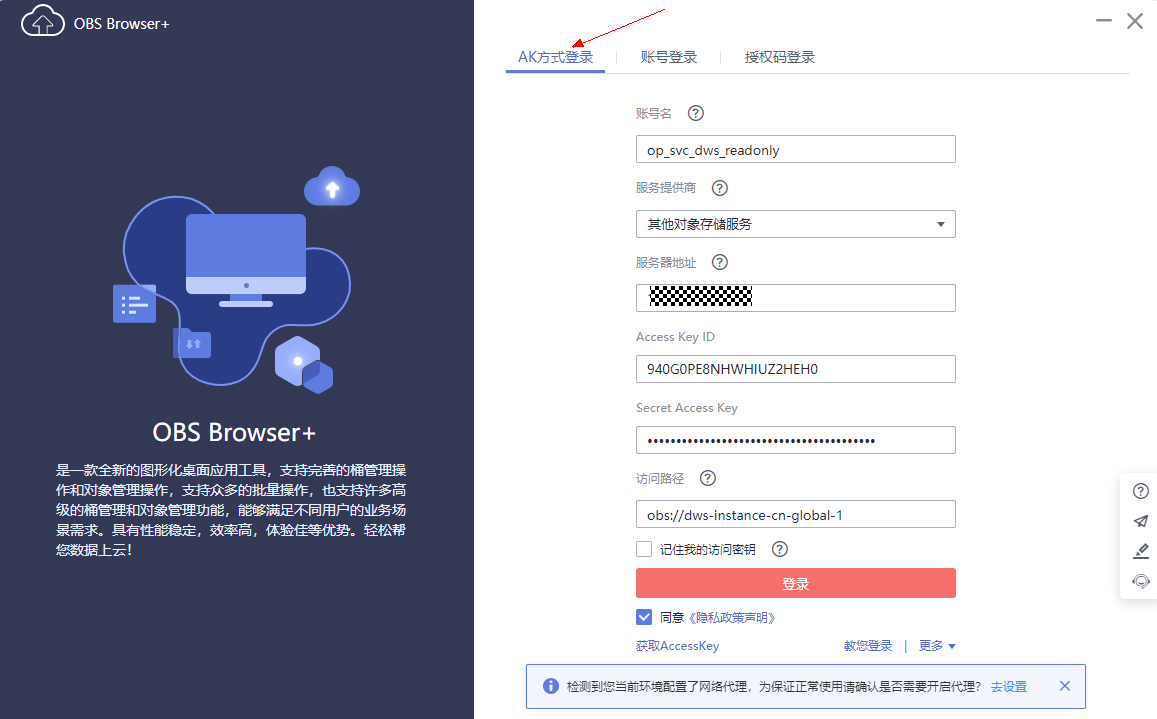二、获取登录OBS桶的地址、AK、SK等信息