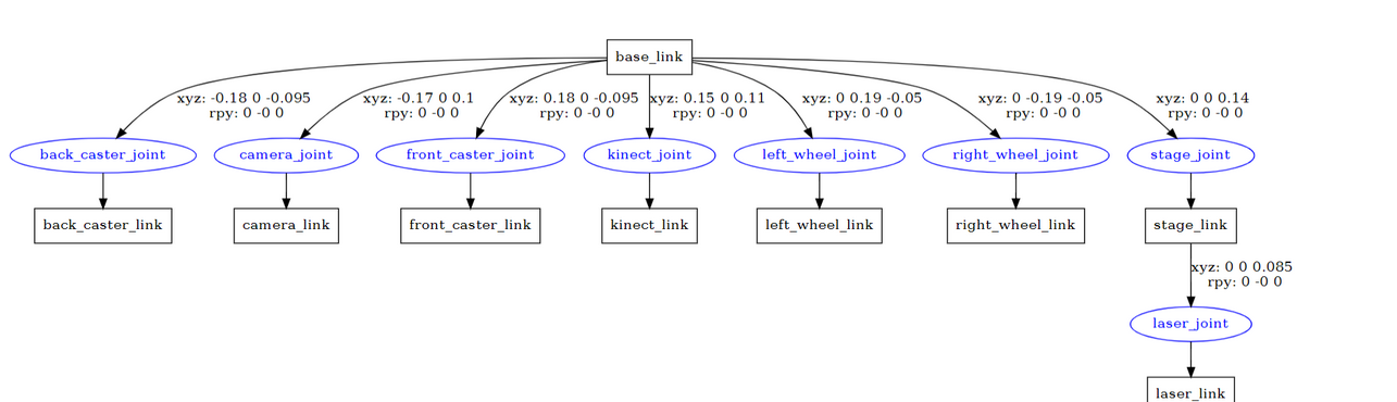 // xyz表示底盘质心在base_link坐标系的偏移位置,rpy(roll,pitch,yaw)是底盘绕base_link的x,y,z三个轴的旋转值