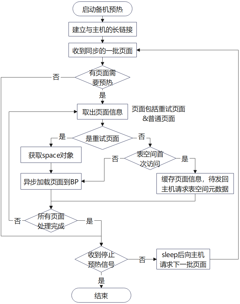 1)启用备机预热时,备机会发起建立一个主备节点间的长链接,专用于页面信息的同步。