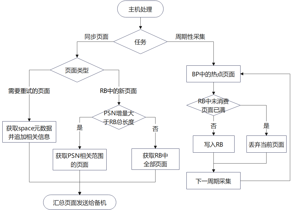 1)新增一个预热序列号(Preload Sequence Number,PSN),用来记录页面的采集、消费情况,RB中每新增一个页面,PSN增1,于是RB中最大的PSN即标识最新写入的页面。主机侧需要维护每个备机上次读取时的PSN,这样当有备机索取页面时,PSN增量(闭区间[备机PSN+1, RB最大PSN])对应的全部有效页面即为本批次需要同步的页面。