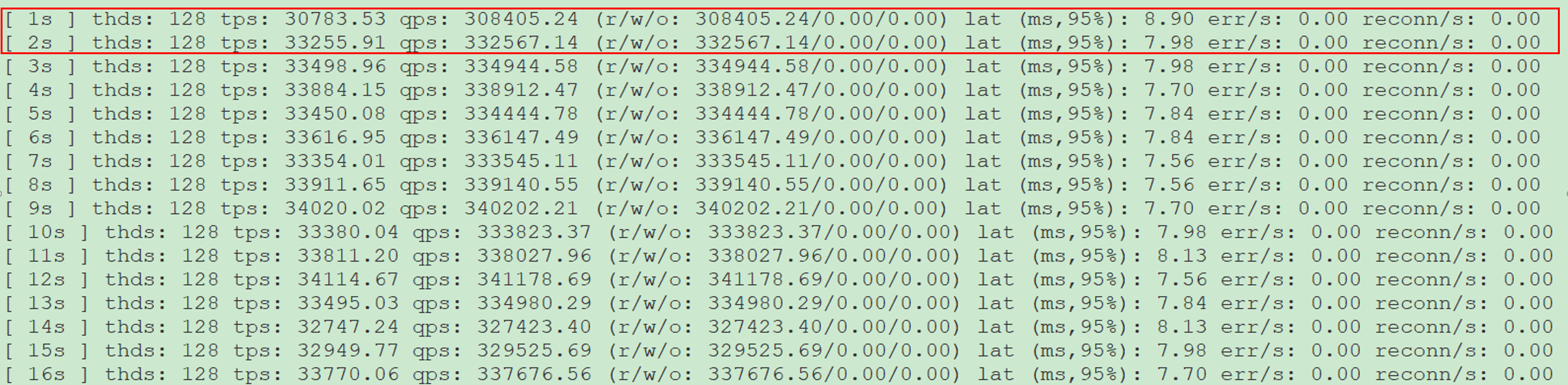 测试条件:使用8U32G实例,sysbench只读模型,64张表,每张表200W数据,sysbench run 5分钟后进行主备倒换。