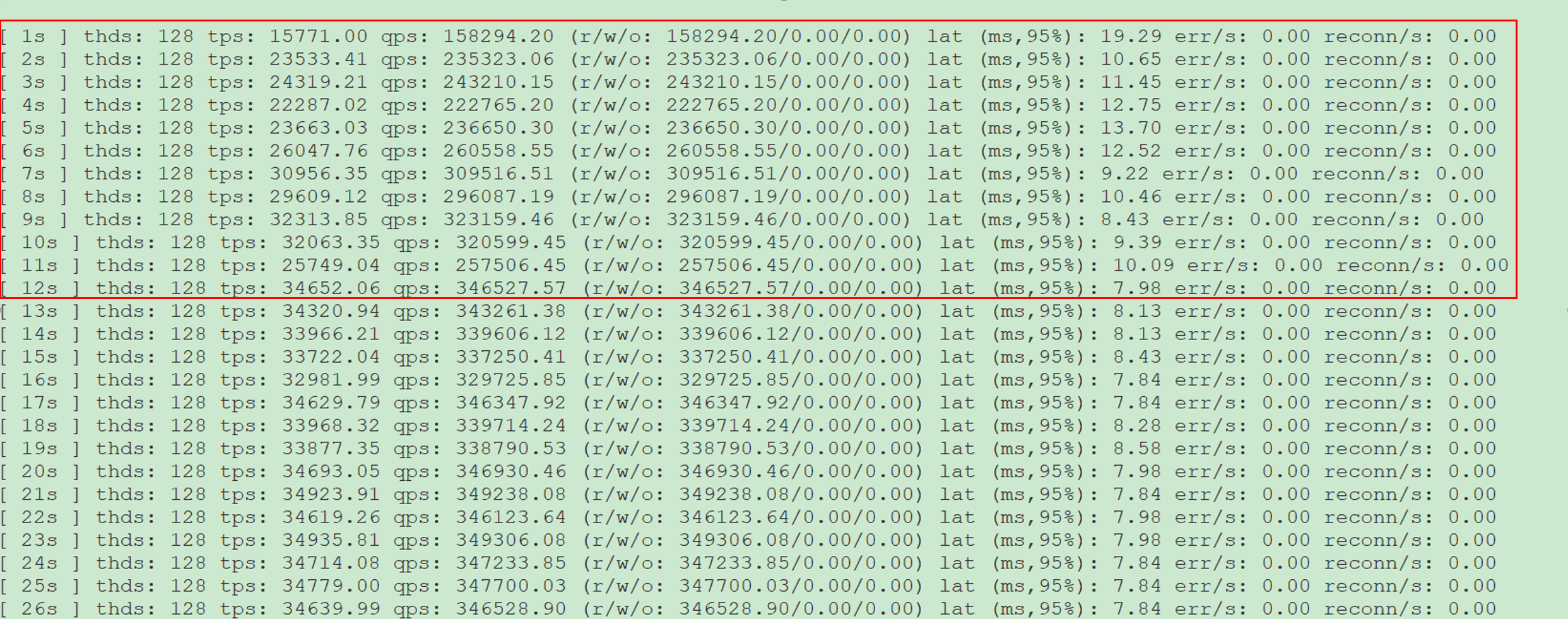可以看到,主备倒换后,运行12s时,QPS达到正常水平。