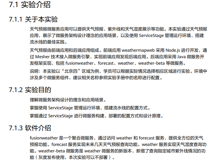通过本次实验,熟悉了应用管理与运维平台ServiceStage,借助CCE集群运行docker容器应用,搭建支持天气预报、紫外线和天气湿度展示等功能的微服务网站。