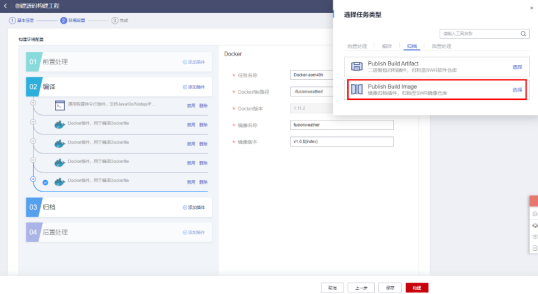 在“归档”中,插件选“Publish Build Image”,点击构建,进入构建流水线,需要运行一段时间。