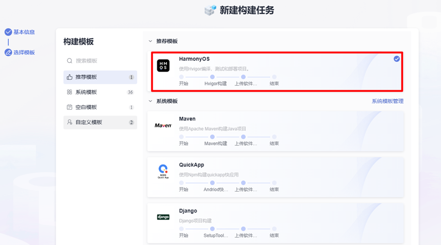 华为云编译构建服务CodeArts Build基于云端大规模分布加速,为企业和开发者提供高速、低成本、配置简单的混合语言构建能力,帮助客户缩短构建时间,提升构建效率。针对鸿蒙应用开发场景,CodeArts Build提供鸿蒙应用构建模板,内置鸿蒙应用的构建环境和构建工具,开箱即用。