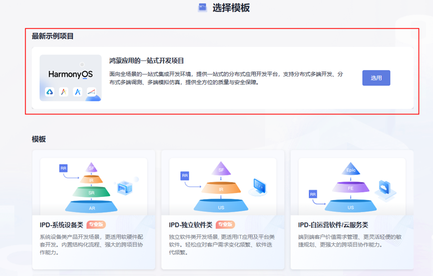 目前,CodeArts还新增了鸿蒙应用的一站式开发模板项目,内嵌官方经典示例工程,提供详细的工程说明和使用方法。项目创建后,系统自动初始化包含代码仓、代码检查、编译构建以及鸿蒙开发流水线等鸿蒙应用开发任务,开发者可直接试用体验。