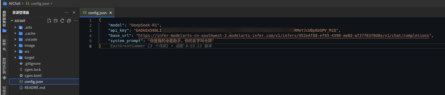 修改配置config.json配置文件,配置DeepSeek的API信息。