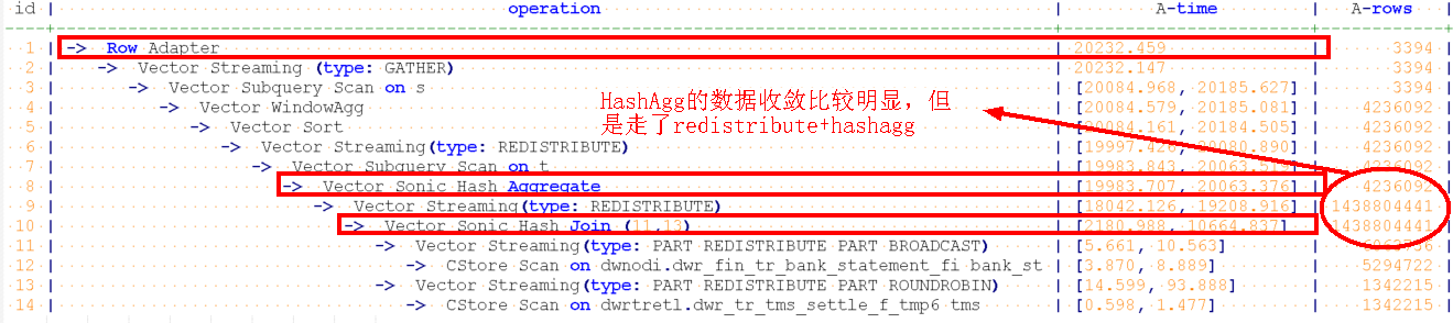 场景2:GROUP BY收敛效果不好,但走了hashagg+redistribute+hashagg