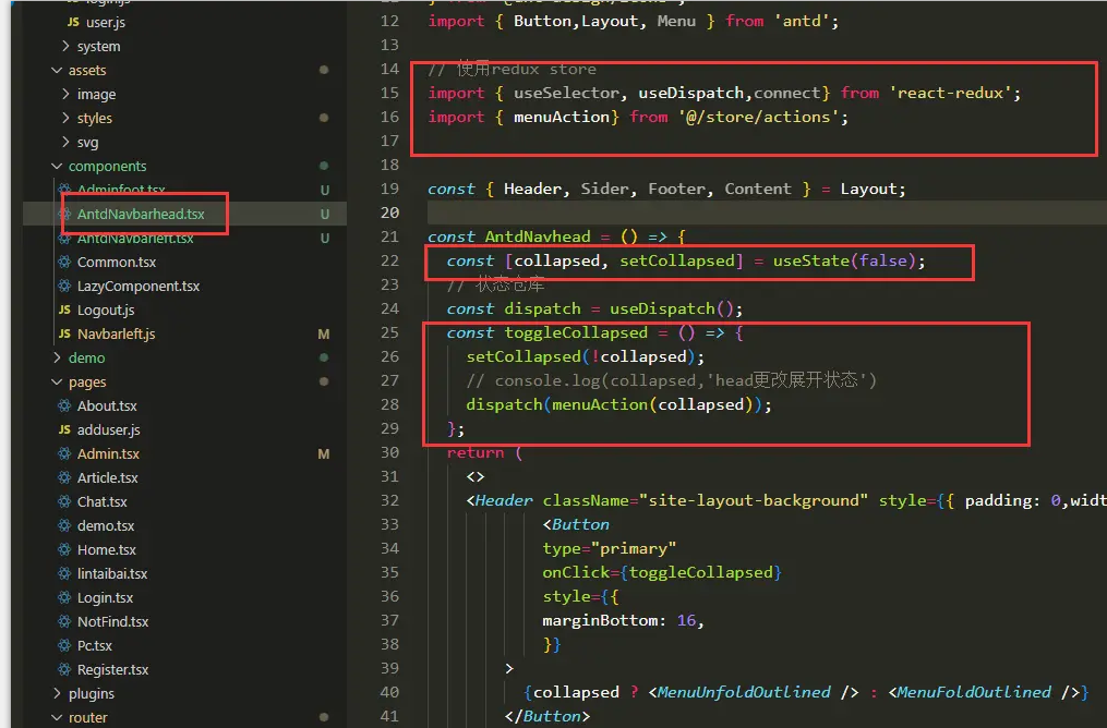 将头部菜单给抽离为单个组件然后放入我们的全局状态,当点击的时候操作这个状态行为