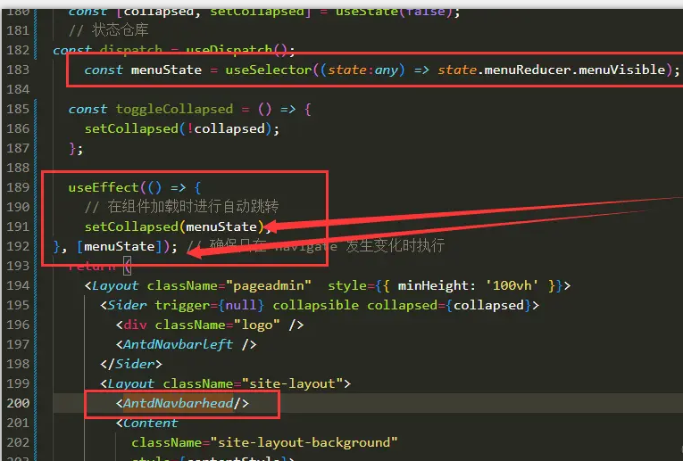 在我们的admin主要的页面之中只需要引入组件,在useEffect之中加载的时候加入menuState 即可
