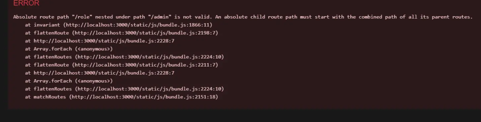 Absolute route path "/role" nested under path "/admin" is not valid. An absolute child route path must start with the combined path of all its parent routes.