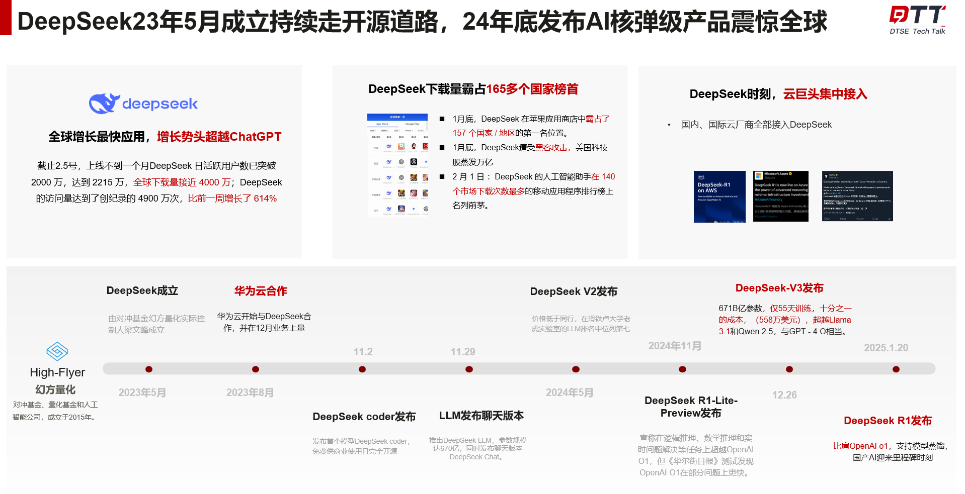 效果好:DS采用了一系列全新的架构,包括自研MOE,改造注意力算子、压缩KV缓存等技术,压缩了推理的成本,使得其模型能力表现优异,用户体验也达到了新的高度。这些效果上的优势使得DeepSeek能够快速吸引用户和开发者,在互联网平台上迅速传播,一度成为关注的焦点。