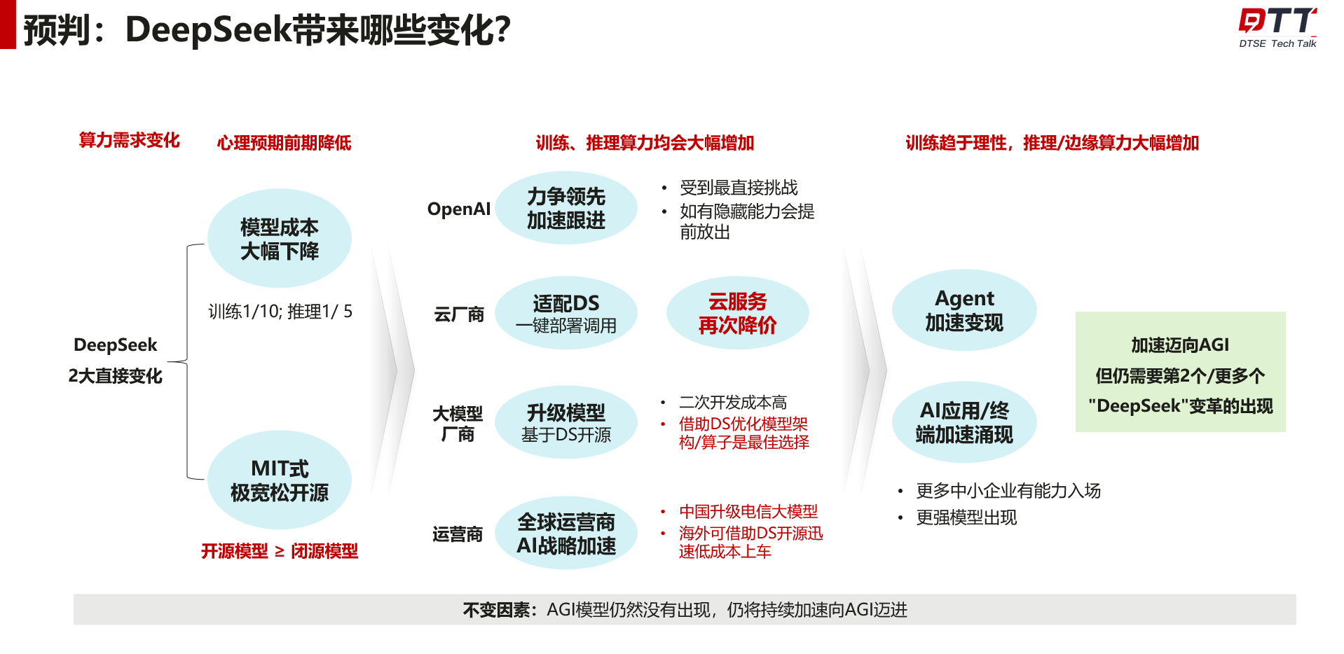 未来,DeepSeek带来哪些变化?华为云AI DTSE技术布道师Jephybyte老师认为,我们将会加速迈向AGI,但仍需要第2个/更多个"DeepSeek"变革的出现。