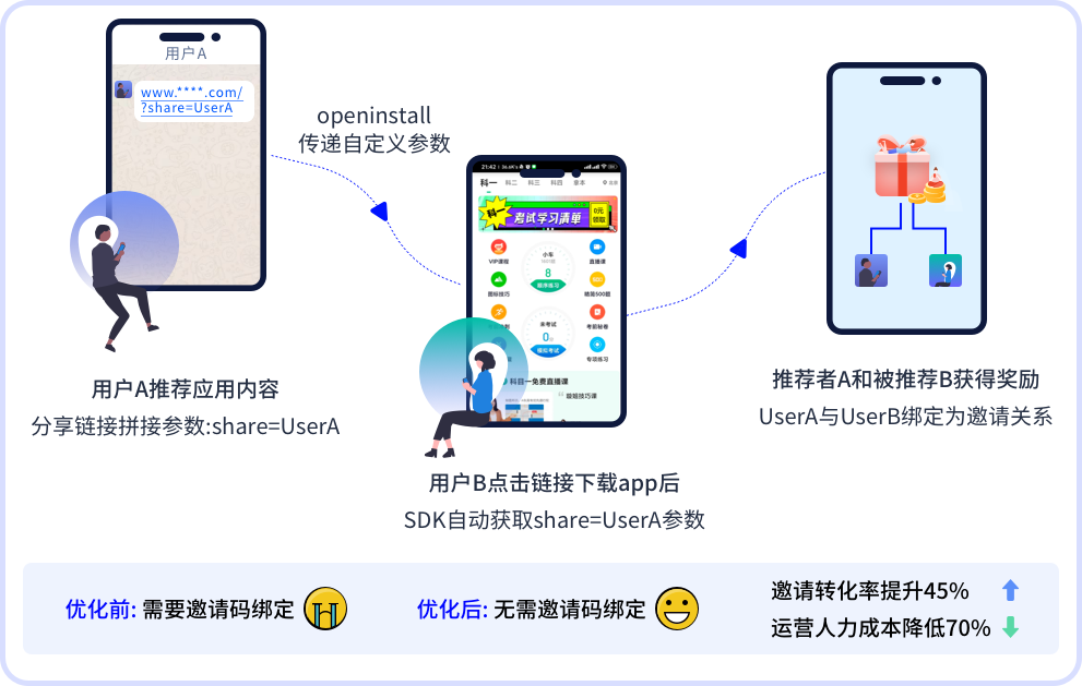 某社交App通过openinstall实现“分享链接自动绑定邀请关系”: