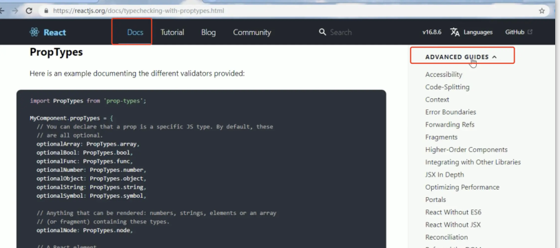 上面的部分其实就是我们propTypes的代码和写法: