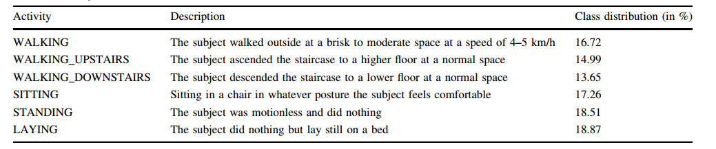 UCI-HAR:包含6种活动,由30名志愿者使用智能手机记录。