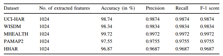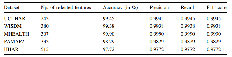有FS模型:在UCI-HAR、WISDM、MHEALTH、PAMAP2和HHAR数据集上的准确率分别达到了99.45%、99.38%、99.90%、98.29%和97.72%。