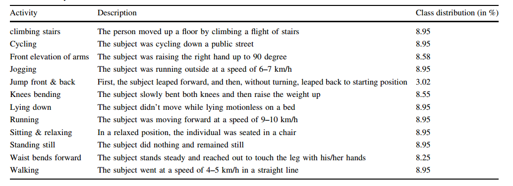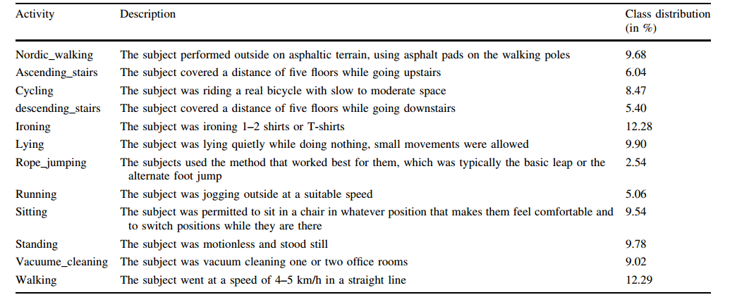 PAMAP2:包含12种活动,使用3个惯性测量单元(IMU)记录。