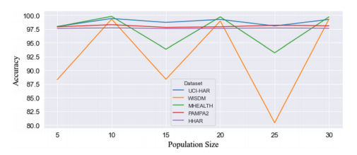 通过在多个公共数据集上的实验验证,证明了提出的结合CWT、空间注意力辅助CNN和GA特征选择的模型在HAR任务上的有效性和优越性。实验结果表明,该模型不仅提高了分类的准确性,还通过特征选择减少了计算资源的需求,提高了模型的实用性。