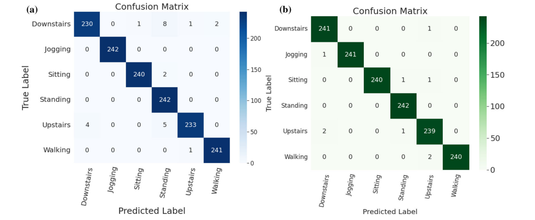 尽管模型整体性能良好,但在某些相似活动类别上仍然存在混淆,如站立和坐下、上楼和下楼等。