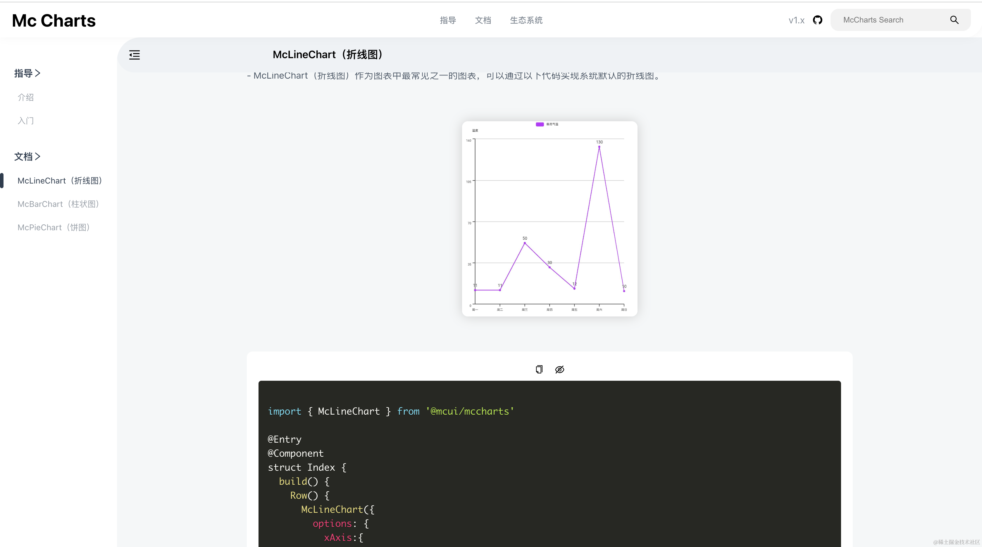 2、文档页面:主要是详细介绍组件的安装方式、每个组件中的属性以及方法,是开发者使用最广的一个页面