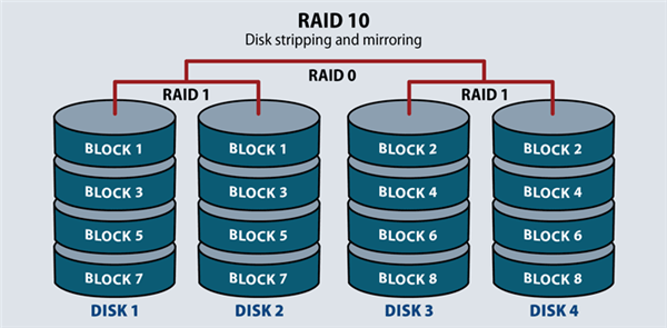 RAID 10,也被称为RAID 1+0,是一种结合了RAID 1的镜像功能和RAID 0的条带化技术的存储阵列技术。它兼具了数据冗余和性能提升的优点,对于高端存储问题的解决有很大的帮助。