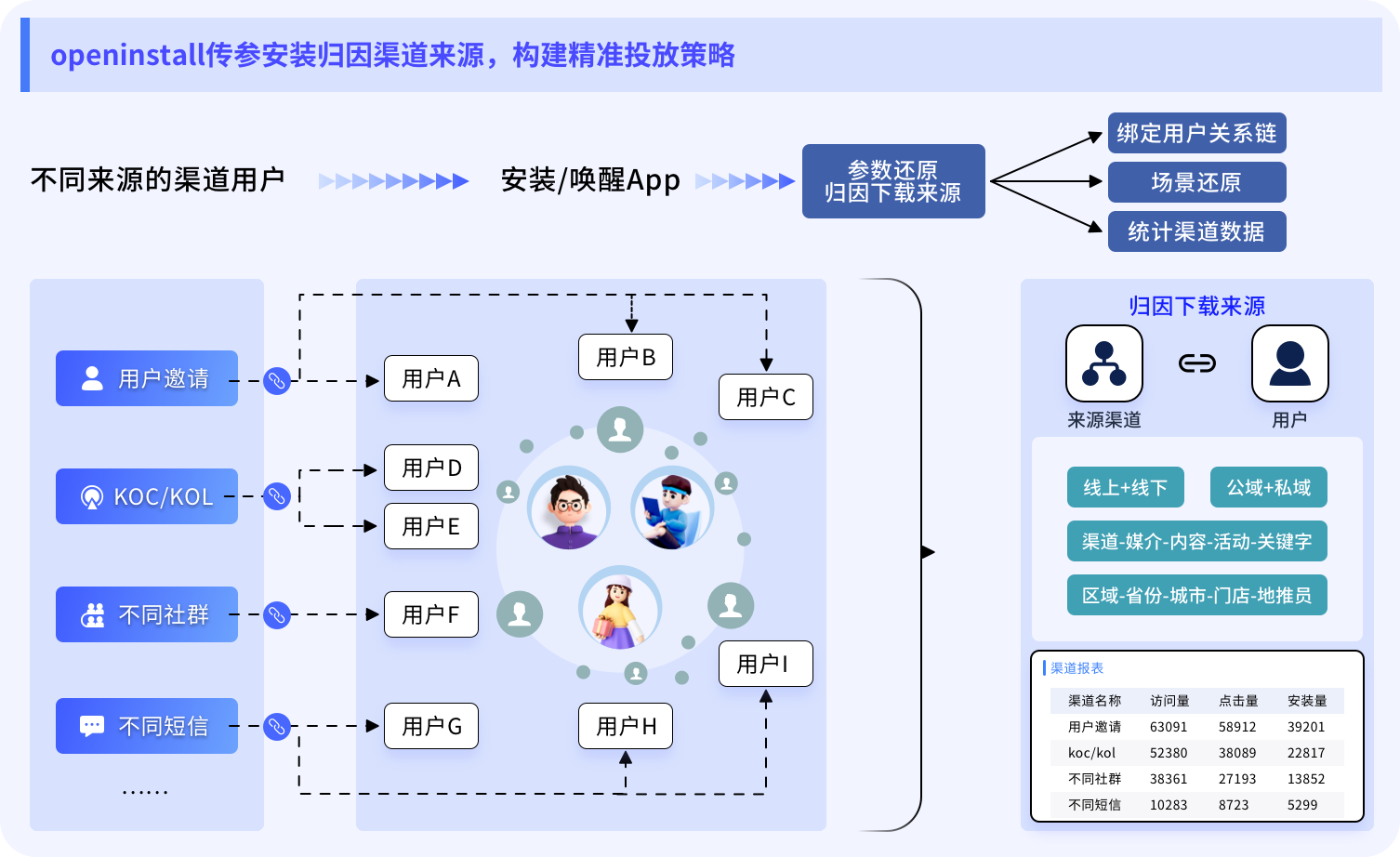 openinstall全渠道统计的价值突围:通过跨平台、多场景的数据整合与归因分析,企业可精准识别高价值渠道,动态优化投放策略,实现“每一分钱花在刀刃上”。
