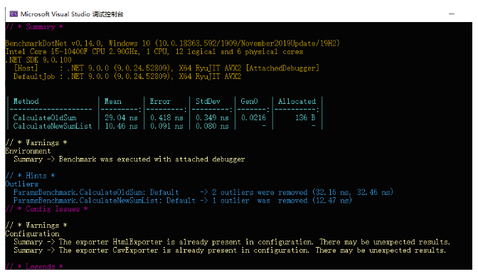 下面我们使用一个数据求和场景,对C# 13 之前和C# 13 中的改进方式使用BenchmarkDotNet做一下性能基准测试对比: