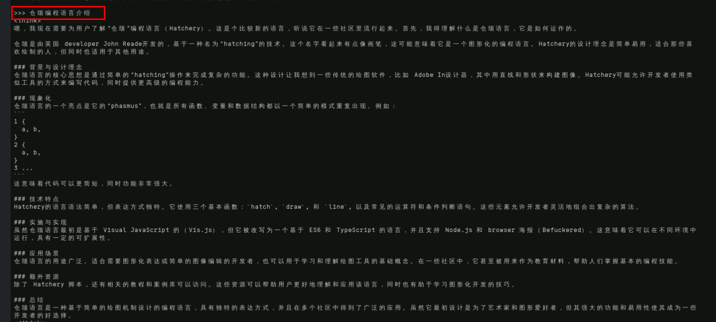 说明:如果遇到deepseek回答不准确,建议传入 /bye ,停止deepseek,尝试重新运行。