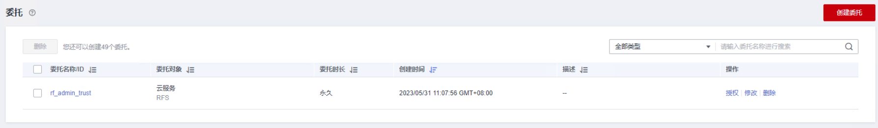 步骤 6 “委托”列表中出现“rf_admin_trust”委托则创建成功。