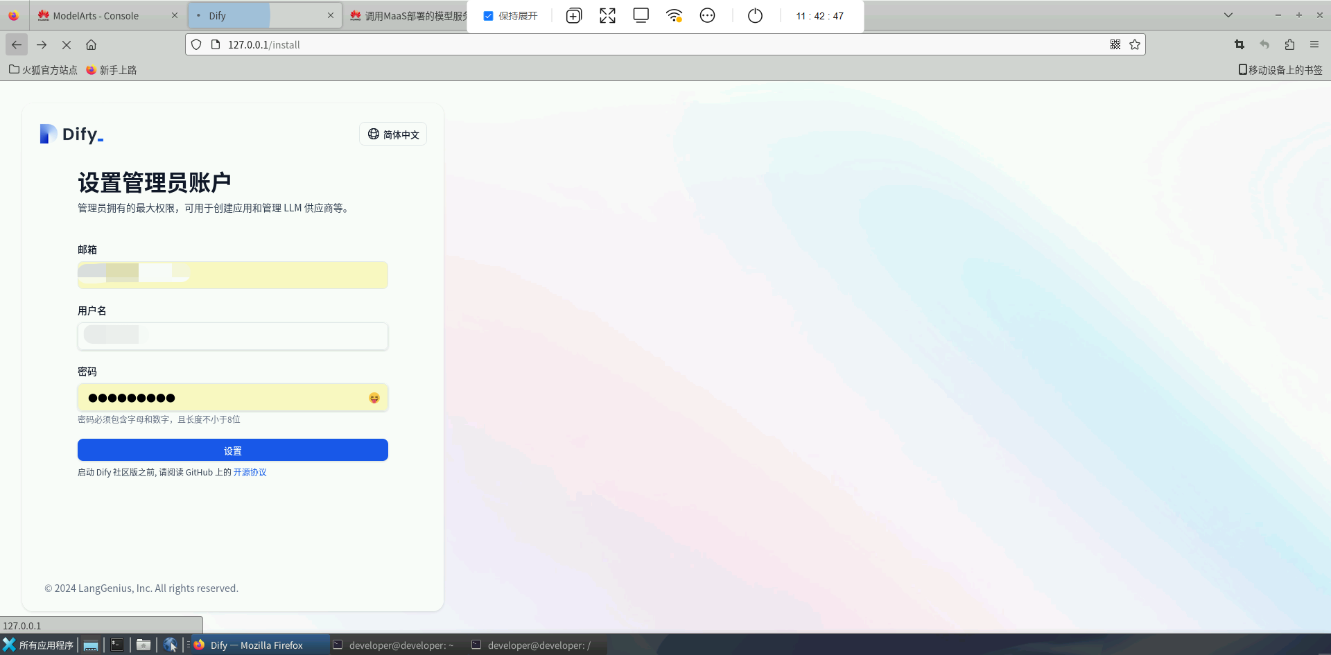 通过云主机,打开浏览器,输入http://127.0.0.1,即可访问Dify.AI。
