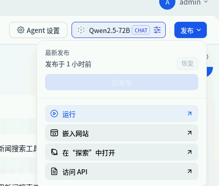 在右上角单击“Agent 设置”,选择上一步配置好的模型进行使用。