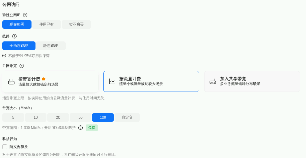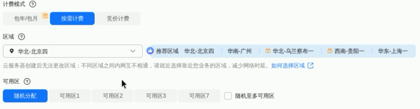 3. 计费模式选择“按需计费”,区域选择“北京四”