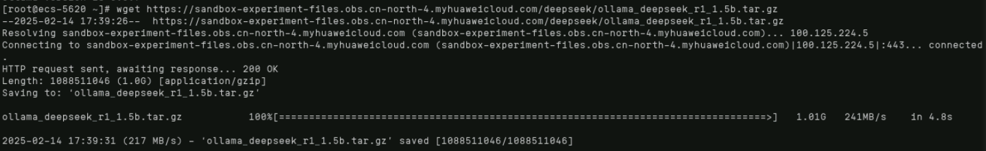 wget https://sandbox-experiment-files.obs.cn-north-4.myhuaweicloud.com/deepseek/ollama_deepseek_r1_1.5b.tar.gz
