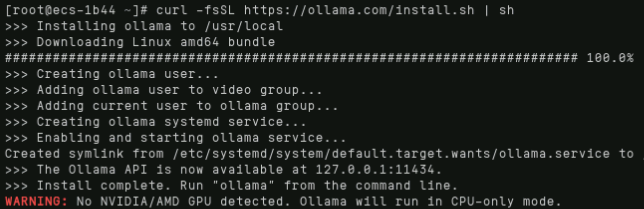 下面,为您提供两种方案来安装ollama:方案一通过linux命令从github下载最新版本的工具进行安装;方案二通过下载已备份在OBS中的ollama工具进行安装,下载速度较快,ollama版本为2024年2月10日版本。