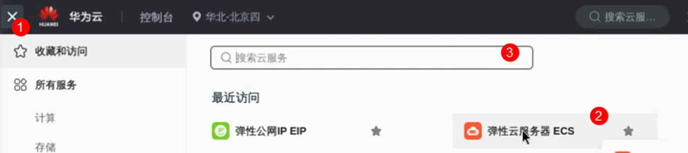 说明:如选项卡里没有【弹性云服务器ECS】,可在搜索框里输入“ECS”搜索。