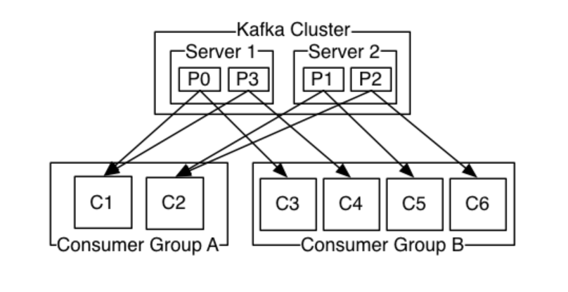 每个 Consumer Group 都会消费一个 Topic 全量的数据,彼此之间互不干扰。同一个 Consumer Group 下的 Consumer 只能消费到其中一部分 Partition ,通过多个 Consumer 可以达到并行消费的目的。Partition 数量推荐设为 Consumer 数量的整数倍,便于均分。