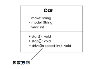 类图中使用了三个主要的参数方向性表示法: