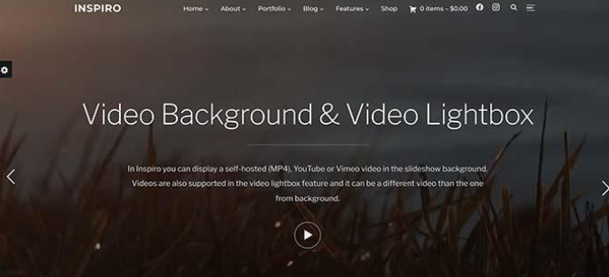 Inspiro是一个黑暗的 WordPress 业务和 WooCommerce主题。您也可以将其用于投资组合网站。它支持开箱即用的视频嵌入,并允许您创建全屏幻灯片以立即吸引访问者的注意力。