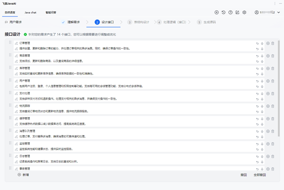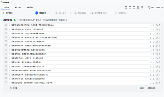 在众多 AI 工具中,我们选用了飞算 JavaAI。它具备强大的从需求分析到代码生成的全流程智能引导能力,能极大提升开发效率。飞算 JavaAI 支持文本 / 语音输入需求,通过大模型技术精准理解业务需求,为后续开发指明方向。其自动化设计引擎可一站式生成接口与表结构设计,借助自研 Java 专有模型辅助梳理业务流程和数据库表结构,在搭建秒杀平台后端的数据库设计环节发挥了关键作用。