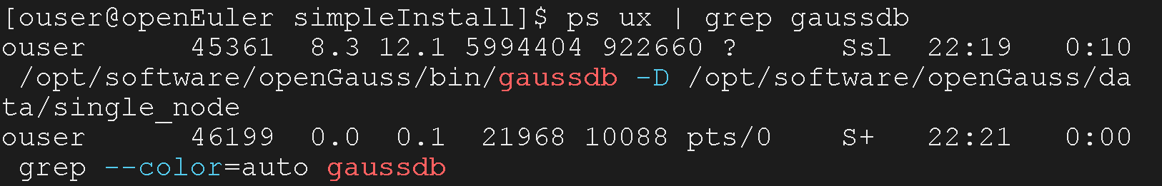 [ouser@openEuler simpleInstall]$ ps ux | grep gaussdb