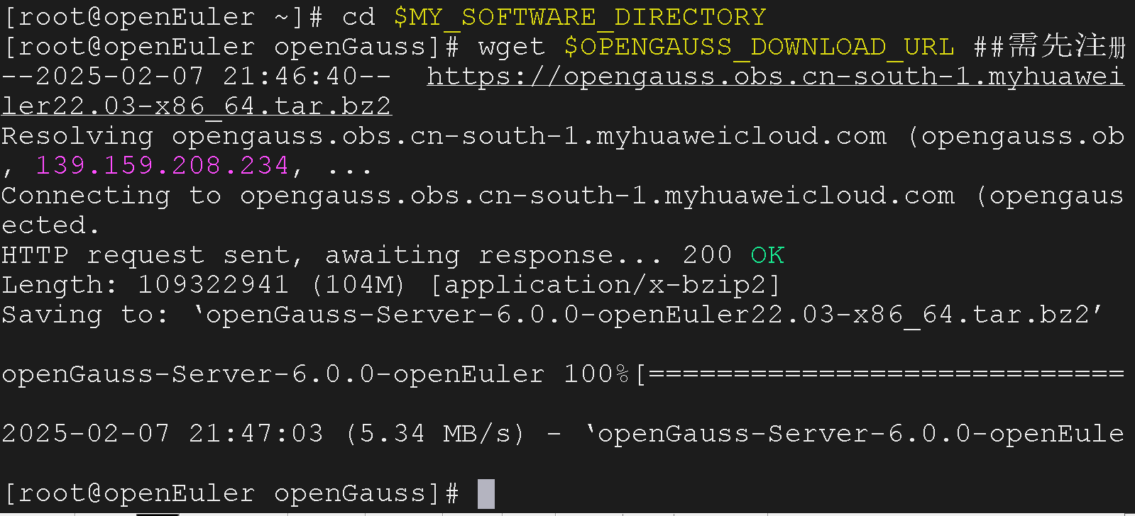 [root@openEuler openGauss]# wget $OPENGAUSS_DOWNLOAD_URL ##需先注册并登录opnGuass.org网站