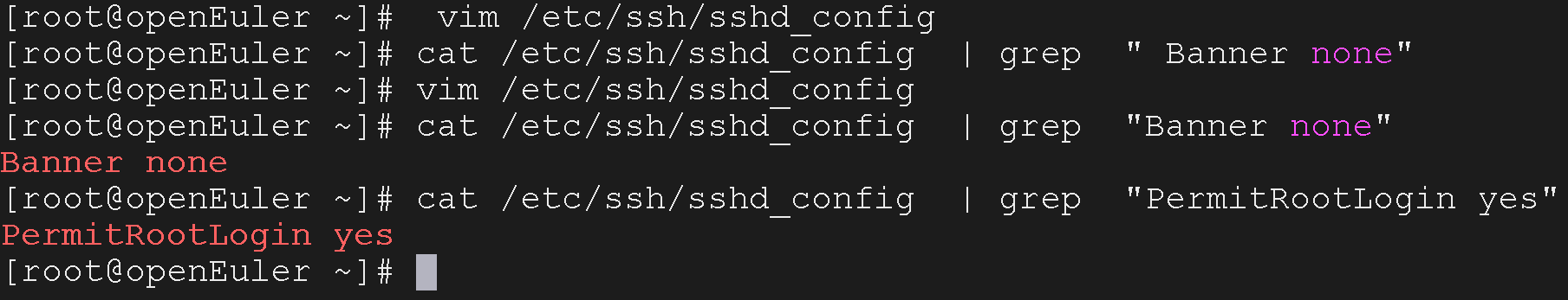 [root@openEuler ~]# cat /etc/ssh/sshd_config | grep "Banner none"