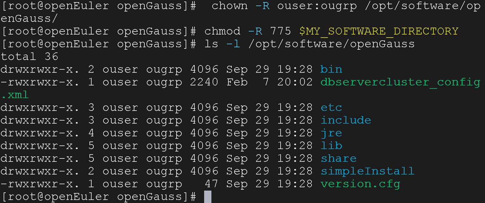 [root@openEuler openGauss]# chmod -R 775 $MY_SOFTWARE_DIRECTORY