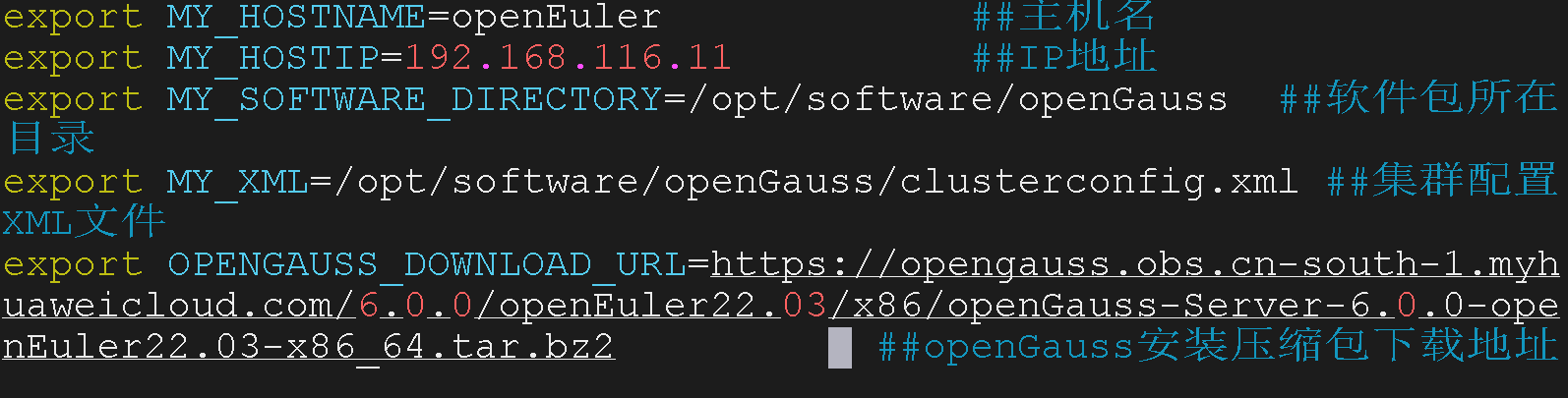 export MY_XML=/opt/software/openGauss/clusterconfig.xml ##集群配置XML文件