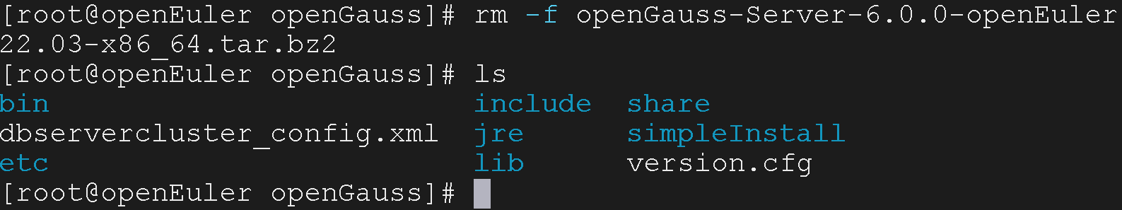 [root@openEuler openGauss]# rm -f openGauss-Server-6.0.0-openEuler22.03-x86_64.tar.bz2