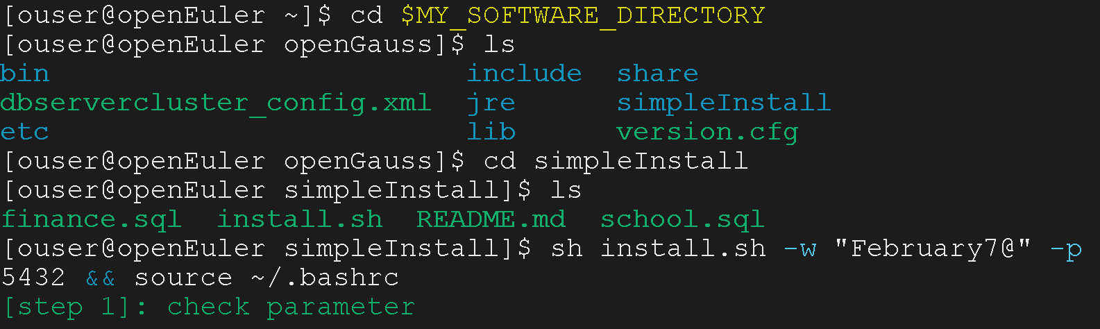 [ouser@openEuler simpleInstall]$ sh install.sh -w "February7@" -p 5432 && source ~/.bashrc