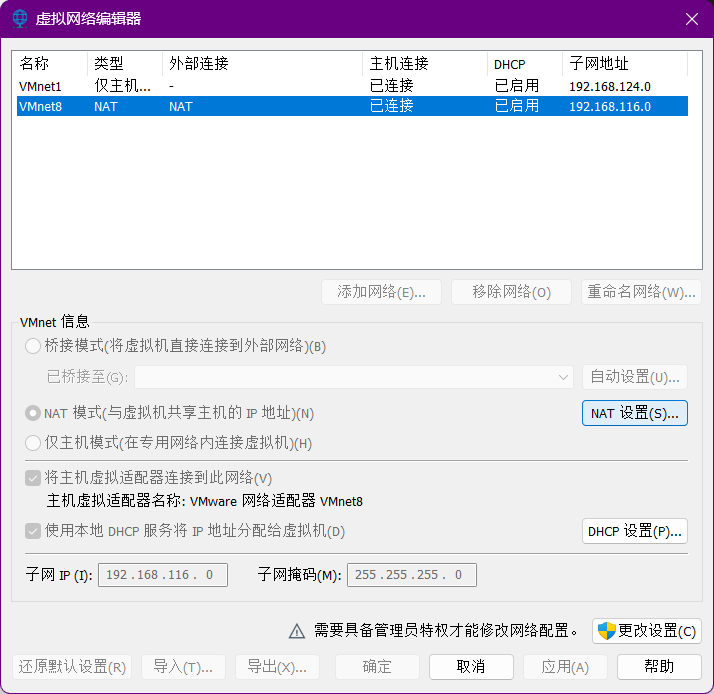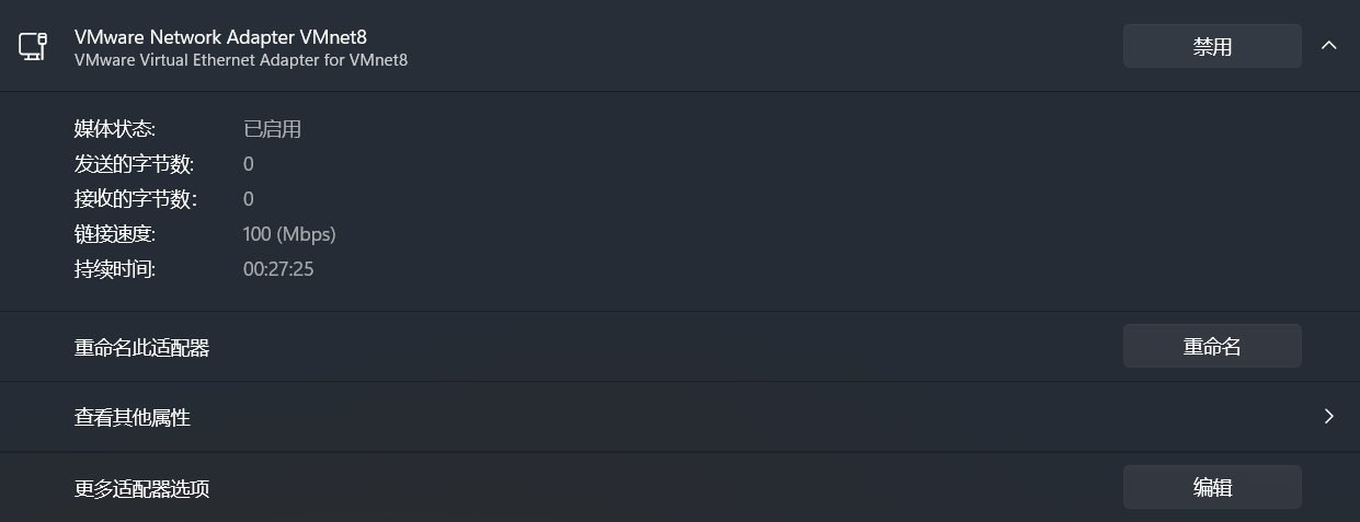 (3)编辑VMware Network Adapter VMNet8更多适配器,进行属性编辑。