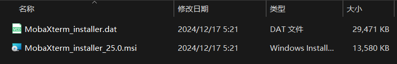解压缩MobaXterm_Installer_v25.0.zip后,双击MobaXterm_installer_25.0.msi文件进行安装。
